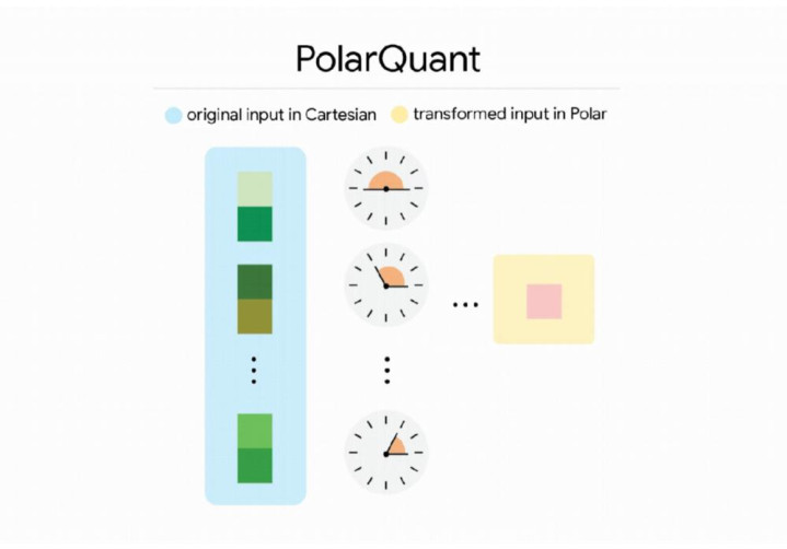 PolarQuant工作概念图 / 笛卡尔坐标系转极坐标的量化示意图